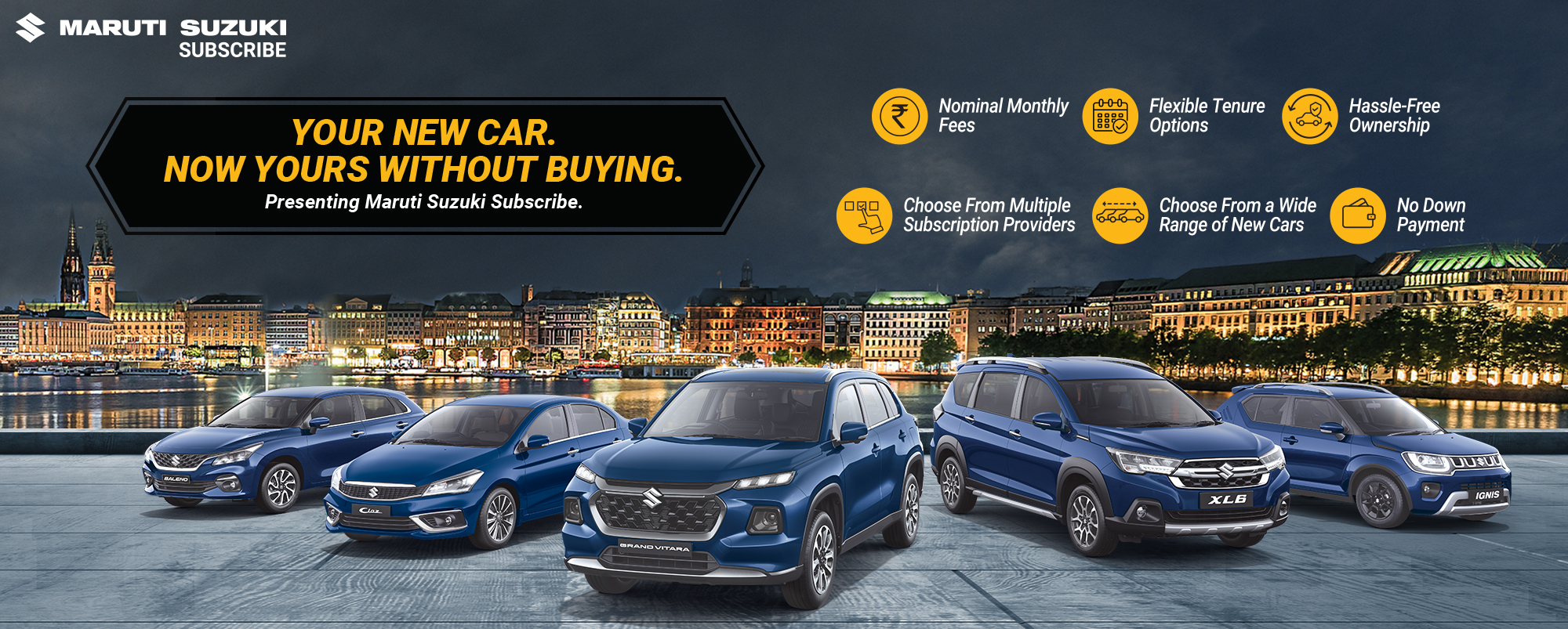 Maruti Suzuki Subscribe enables all customers to enjoy driving their preferred Maruti Suzuki cars without having to deal with all the financial responsibilities that come with owning a car.All you need to do is opt for a monthly subscription plan at a fixed monthly fee, which includes the routine maintenance and insurance costs, and choose a flexible tenure. At Satya Automobile NEXA Car Showroom - Tifra, Bilaspur in, , Bilaspur, all Hatchback, Sedan, SUV, the MUV models line-up includes Baleno, Invicto, EVitara, Jimny, Ciaz, Ignis, Fronx, Grand Vitara, XL6. Here, you will enjoy Maruti Suzuki Subscribe benefits such as:
